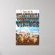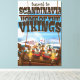 Scandinavia home of the vikings cartoon travel poster. Funny travel poster.