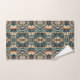 This elegant bath towel set brings a touch of sophisticated Art Deco style to your bathroom. Each towel features a unique Scandinavian Art Deco design, blending the clean, geometric patterns of Art Deco with the warm, folk-inspired shapes of Nordic design. The rich colour palette of deep navy, earthy orange, and soft cream transforms a simple bathroom essential into a piece of decorative art. The towels are made from a soft, absorbent material, ensuring both style and everyday comfort.