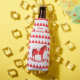 This awesome Christmas bottle cooler features a digital art image of a cute Scandinavian style rocking horse. The horse is red with a dark red mane, tail and hooves. The friendly horse is smiling. It has a white saddle and reins with pretty red Scandi folk style patterns on the saddle including the sun, moon and stars and hearts and flowers. The base of the rocking horse is red and is covered in pretty white leaves. The design was inspired by the Swedish Dala horse. There is custom text so you can personalise this design with a name or message of your choice.
