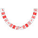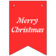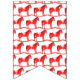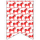 This awesome Christmas bunting features a digital art image of a cute Scandinavian style rocking horse. The horse is red with a dark red mane, tail and hooves. The friendly horse is smiling. It has a white saddle and reins with pretty red Scandi folk style patterns on the saddle including the sun, moon and stars and hearts and flowers. The base of the rocking horse is red and is covered in pretty white leaves. The design was inspired by the Swedish Dala horse. There is custom text so you can include a message.