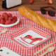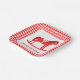 This awesome set of Christmas square paper party plates features a digital art image of a cute Scandinavian style rocking horse. The horse is red with a dark red mane, tail and hooves. The friendly horse is smiling. It has a white saddle and reins with pretty red Scandi folk style patterns on the saddle including the sun, moon and stars and hearts and flowers. The base of the rocking horse is red and is covered in pretty white leaves. The design was inspired by the Swedish Dala horse. There is custom text so you can personalise this design with your own message.