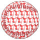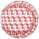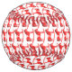 This awesome patterned Christmas softball features a digital art image of a cute Scandinavian style rocking horse. The horse is red with a dark red mane, tail and hooves. The friendly horse is smiling. It has a white saddle and reins with pretty red Scandi folk style patterns on the saddle including the sun, moon and stars and hearts and flowers. The base of the rocking horse is red and is covered in pretty white leaves. The design was inspired by the Swedish Dala horse.