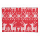 Seamless Christmas scandinavian pattern with white snowflakes, deer, flowers on red background. Vintage illustration.