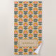 Make a stylish splash at the beach or pool with this personalised retro floral beach towel. Featuring a vibrant flower pattern in mustard yellow, pink, and green, this towel adds a playful touch to any sunny day. Customise it with your name for a unique and personal accessory that stands out. Ideal for summer outings or as a thoughtful gift, this towel is both functional and fashionable, perfect for vintage design lovers.