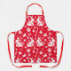 Scandinavian Folk Art Bunny Floral Pattern Red Apron