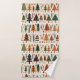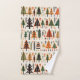 Folk art quilt illustration with Christmas trees, shapes in bold colours. Scandinavian style