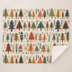 Folk art quilt illustration with Christmas trees, shapes in bold colours. Scandinavian style