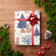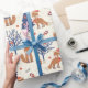 Wrapping paper with Scandinavian Folk Art-style foxes in the snow Christmas trees.