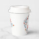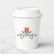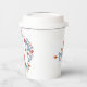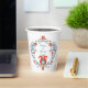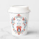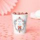 Inspired by the traditional Norwegian rosemaling painting style, this paper cup features a blue swirl circular border design with yellow, grey and red flowers on a white background. Personalisation: You can personalise with your names.