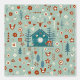 A Scandi inspired woodland pattern with forest creatures and a cuckoo clock on a sage green background. Original art by Nic Squirrell.