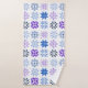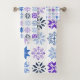 This towel set has a winter design of different snowflakes in blues and purples in rows.