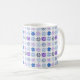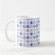 This mug has a winter design of different snowflakes in blues and purples in rows.