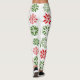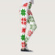 These leggings have a Christmas design of different snowflakes in red and green in rows.