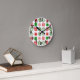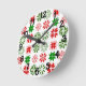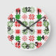 This wall clock has a Christmas design of different snowflakes in red and green in rows.