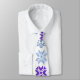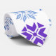 This necktie has a winter design of different snowflakes in blues and purples in rows.
