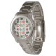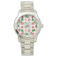 This women's watch has a Christmas design of different snowflakes in red and green in rows.