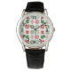 This men's watch has a Christmas design of different snowflakes in red and green in rows.