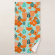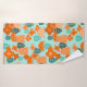 This towel set has a Scandinavian design of flowers and leaves in various shades of orange and teal.