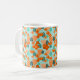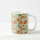 This mug has a Scandinavian design of flowers and leaves in various shades of orange and teal.