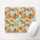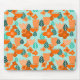 This mouse pad has a Scandinavian design of flowers and leaves in various shades of orange and teal.