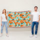 This throw blanket has a Scandinavian design of flowers and leaves in various shades of orange and teal.