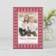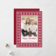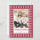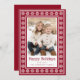 A Happy Holidays or Merry Christmas photo greeting card with a red Scandinavian style star pattern border, custom name, single photo template and customizable text "Happy Holidays". White pattern and text on a dark red background.