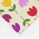 Scandinavian style flower illustrations in a colourful repeat pattern on a cream colour background.