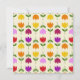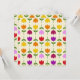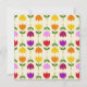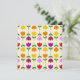 Scandinavian style flower illustrations in a colourful repeat pattern on a cream colour background.