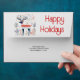 Scandinavian folk art style deer Christmas holiday envelope. It features a deer and stems in red and blue and the text "Happy Holidays" on the flap. The inside includes a pattern of the diagonal text "Happy Holidays"