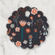 Modern Scandinavian style folk flower pattern in pastel colours on a dark background.