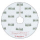 Christmas tree skirt featuring Christmas greetings with vintage botanical winter pine tree design in green and red on white background wishing you a Merry Christmas with personalized family name and year. Perfect for your Christmas Décor this holiday season.