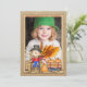 Send warm autumn greetings and an updated photo of your little one to family and friends with this delightful design. The burlap background has a smiling scarecrow and a wagon full of pumpkins. Plenty of room in the back for a lengthy message.
