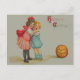 Scared Children Smiling Jack O' Lantern Pumpkin Postcard