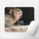 Mousepad with a scared monkey with big eyes looking like it is frightened by something or like it suddenly remembers something.