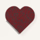 Heart shaped spiral notebook with a floral pattern in scarlet red on charcoal grey.