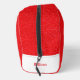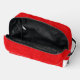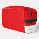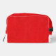 Discover our stylish toiletry bag crafted from vibrant red leather with a fine pebbled grain. The close-up shot highlights its rich colour, supple texture, and intricate details, making it the perfect accessory for organised, on-the-go travel.