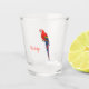 This design features a happy bright red scarlet macaw parrot in cartoon illustration style.