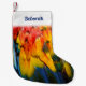 Colourful personalised Christmas stocking featuring an image of a beautiful Scarlet Macaw. Add your own name to personalise.