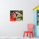 Closeup photo of a scarlet mackaw posing for the camera. The parrot is showing off his beautiful red feathers in this head shot of a tropical bird from Costa Rica. There are some tree leaves in the background of the photo. You can have this funny mackaw picture printed on many different pictures. Any bird lover would enjoy this candid wildlife photograph of a scarlet mackaw in its natural habitat.