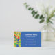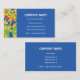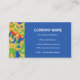 An eye-catching business card with an abstract red, orange, yellow and green design on a royal blue background, with white lettering. Ready for you to customise with your own details.