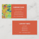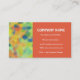 An eye-catching business card with an abstract red, orange, yellow and green design and a tangerine panel, with white lettering. Ready for you to customise with your own details.