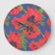 Scarlet Oriental Poppies Pattern on Blue Large Clock