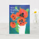 A Fine Art Greeting Card for you to personalise, with scarlet poppies in a white vase, on a deep blue background, from an oil pastel painting by Judy Adamson. Please feel free to customise the inside text as well as the front cover. Other products and cards with this 'Scarlet Poppies' design available in my store.
