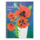 A bright and cheerful spiral notebook with a white vase of scarlet poppies on a blue background, from an oil pastel painting by Judy Adamson.
