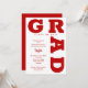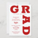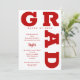 GRAD in bold scarlet red lettering curves around the edges of these white background graduation party invitations. MATCHING items in our collection.