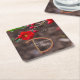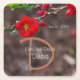 A beautiful floral wedding disposable coasters that matches the Scarlet Top Wedding Invitations and other wedding supplies. This features some red blooms from a Double Take Flowering Quince bush towards the top of the image. They look a lot like a camellia. During the spring they bloom these beautiful double flowers. Click personalise to edit with your information.