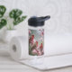 "Scarlet Trio: Red Finches Among Pink Blossoms" Water Bottle