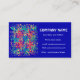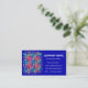 An eye-catching business card with an abstract red, yellow and green design on a royal blue background, with white lettering. Ready for you to customise with your own details.