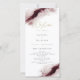 This wedding program features bohemian watercolor splashes with maroon burgundy colouring and an edgy golden script font. Use this order of service wedding day timeline for your bohemian fall or winer wedding or modify for any other event.