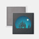 At the heart of this captivating magnet is a creepy haunted house, its intricate details and foreboding silhouette capturing the essence of the supernatural. Against the backdrop of the vivid blue ombre circle and deep black background, the design takes on a life of its own, drawing you into its chilling ambiance. A barren tree stretches its twisted branches towards the moonlit sky, while a menacing hooded figure lurks nearby, leaving an air of suspense and mystery in its wake.